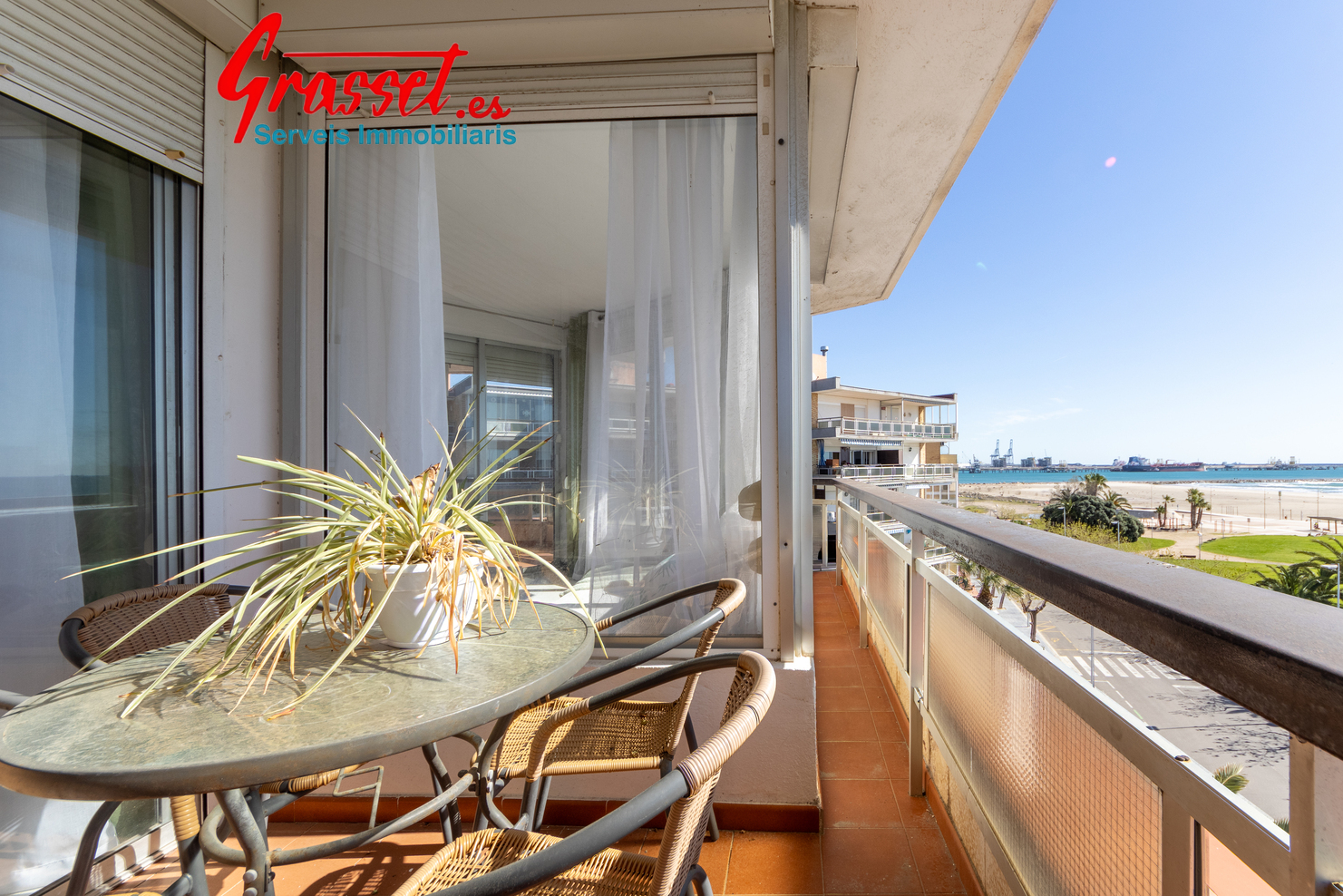 Imagine waking up with the Mediterranean right in front of you, in complete silence, with natural light pouring in every morning. This 5th-floor apartment, in a building with a lift and concierge, offers open and direct sea views from its terrace. The height makes the difference: more light, more privacy, and less noise than most properties in the area.