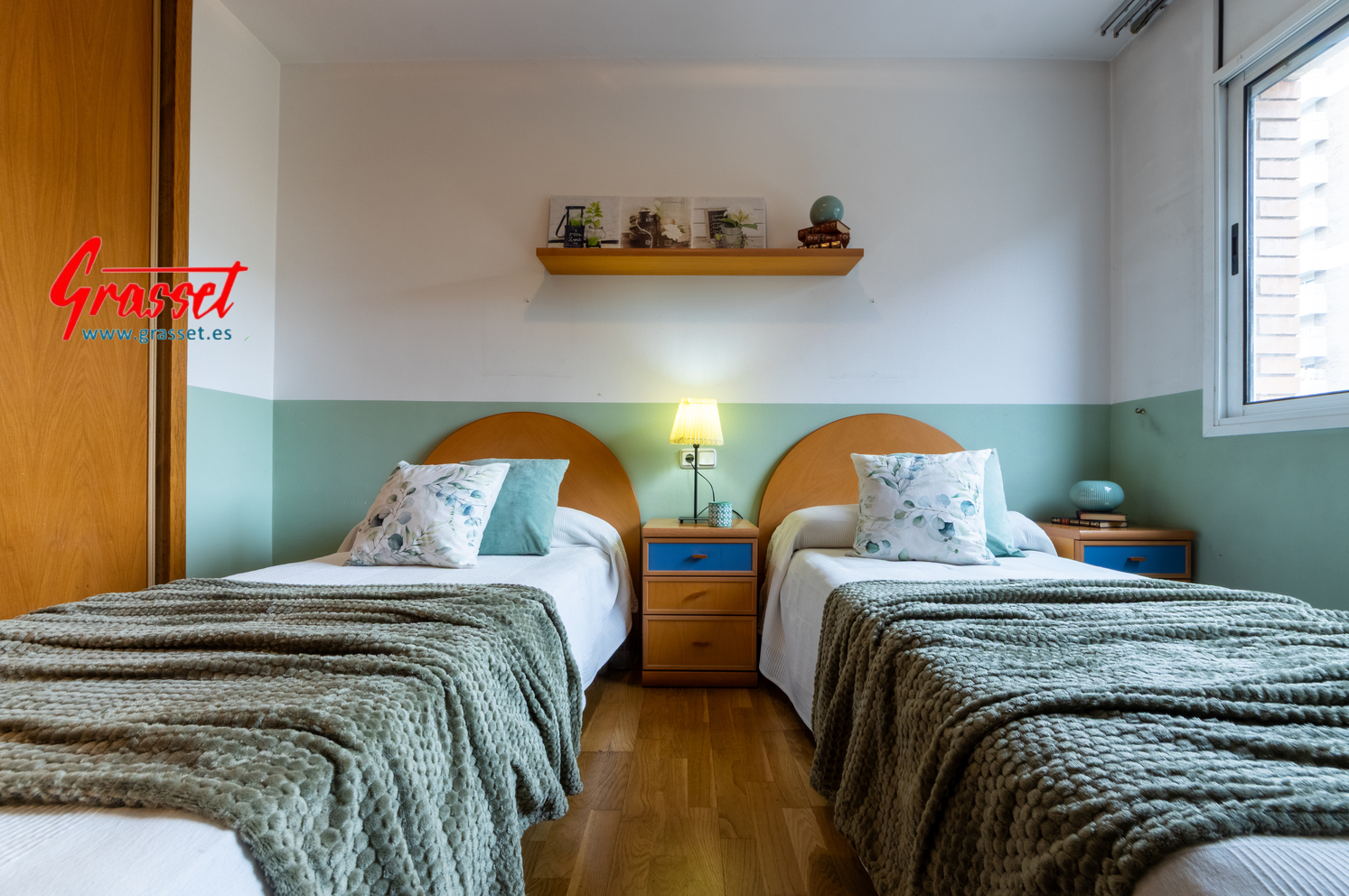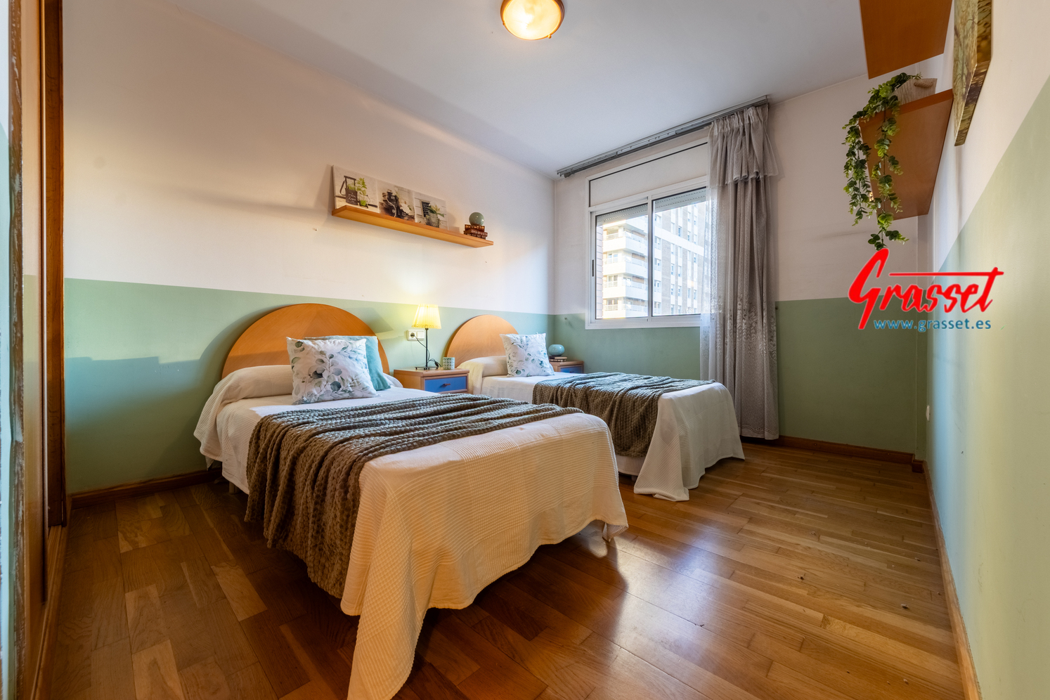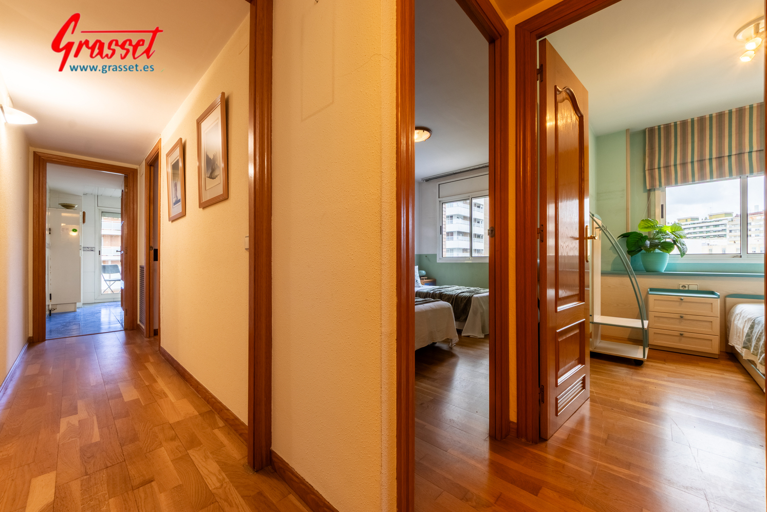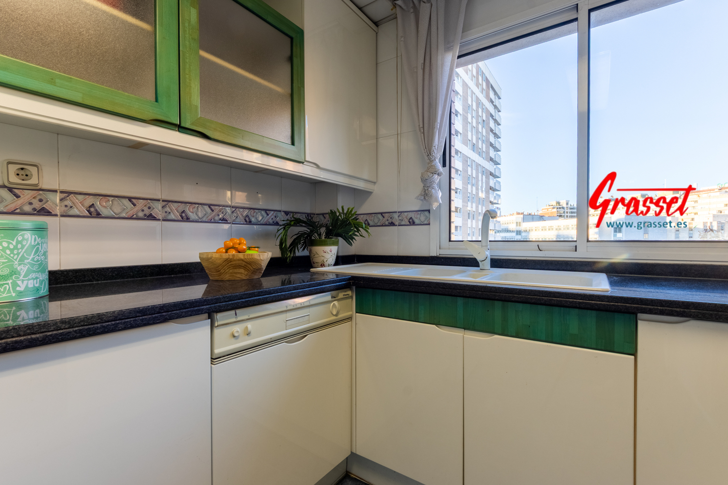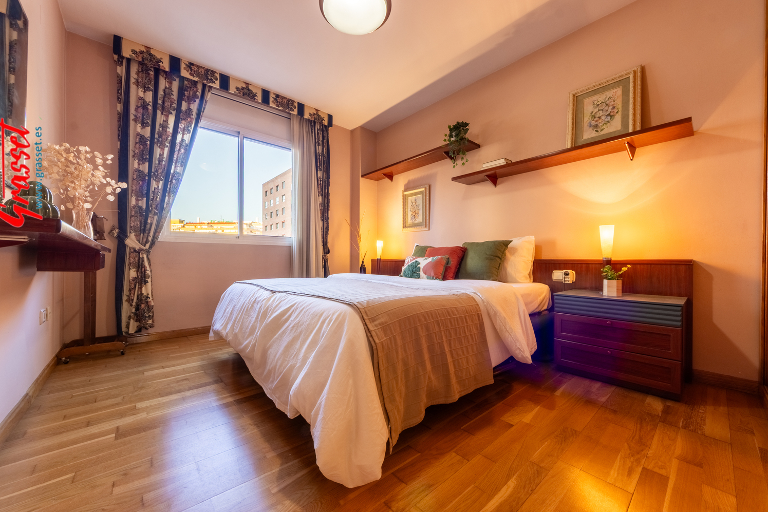 Hablamos de 114,38 m² útiles reales (135 m² construidos), muy bien distribuidos: 4 dormitorios (2 dobles y 2 individuales) con armarios empotrados, 2 baños —uno en suite—, cocina office independiente, donde desayunará toda la familia por las mañanas con vistas al parque de la Quinta de Sant Rafael.