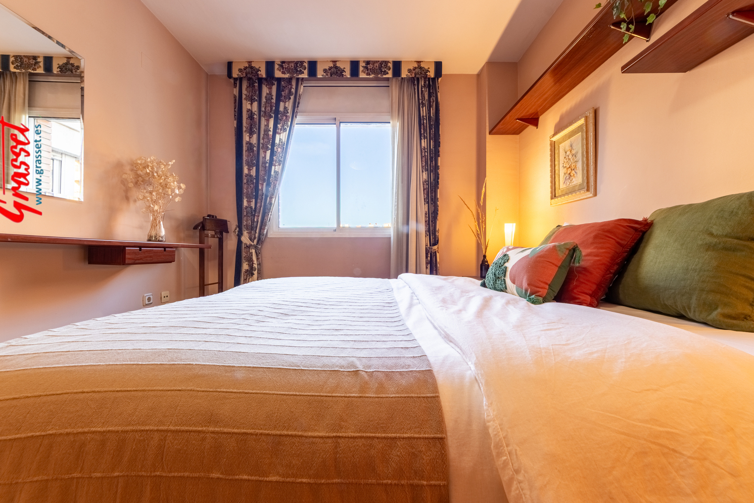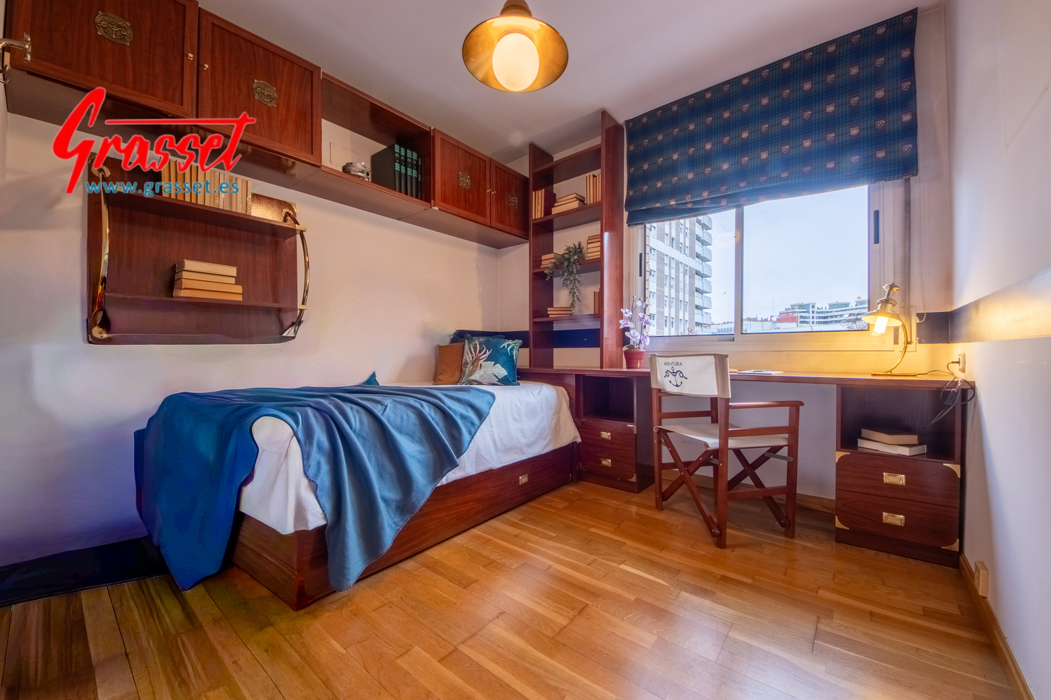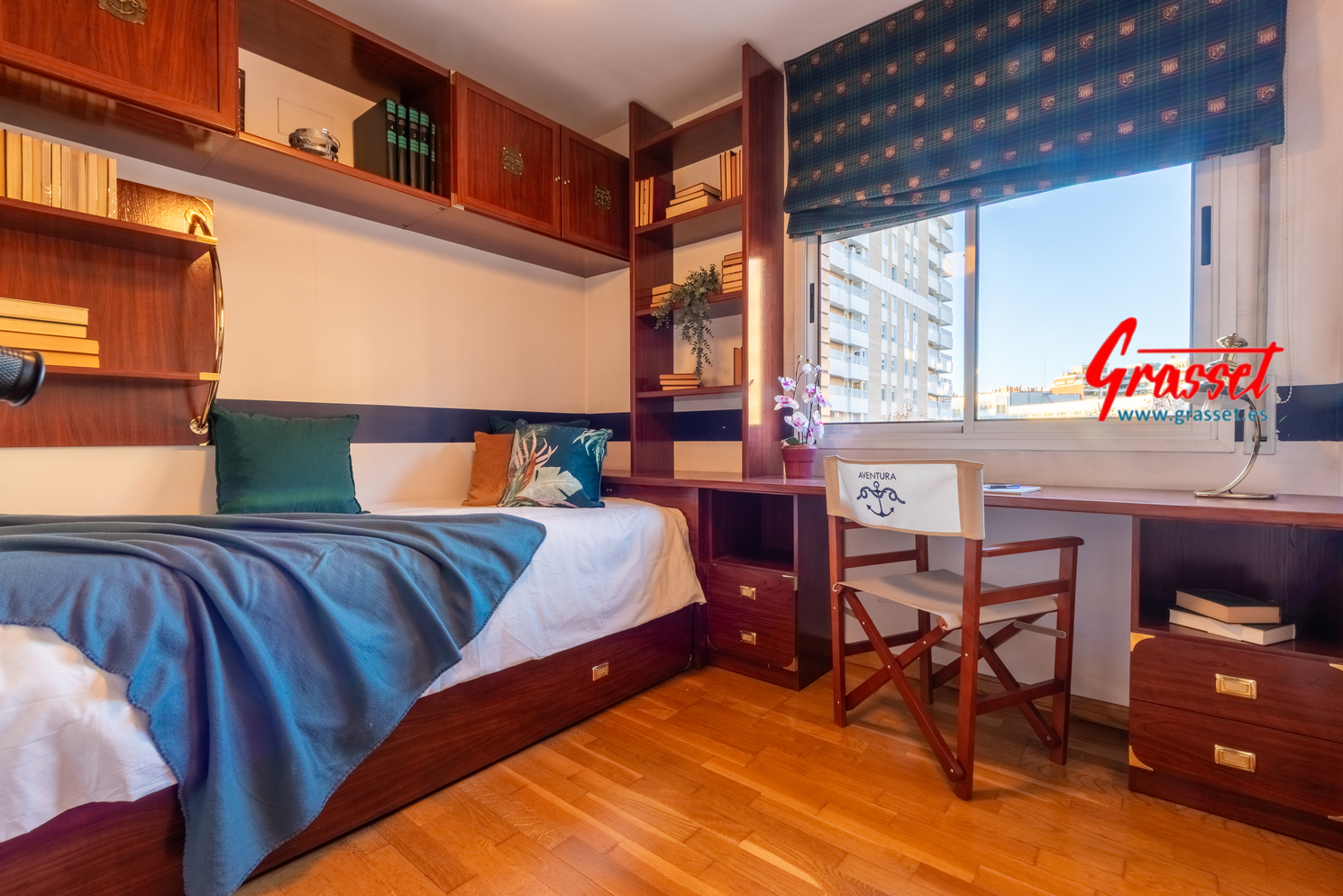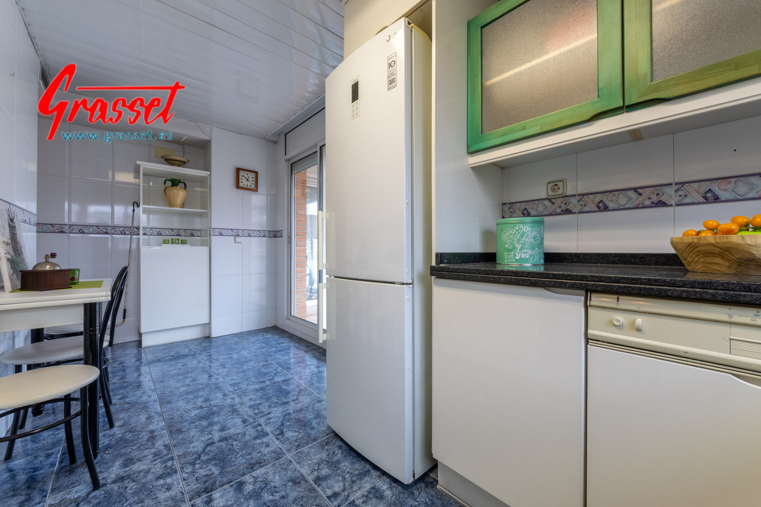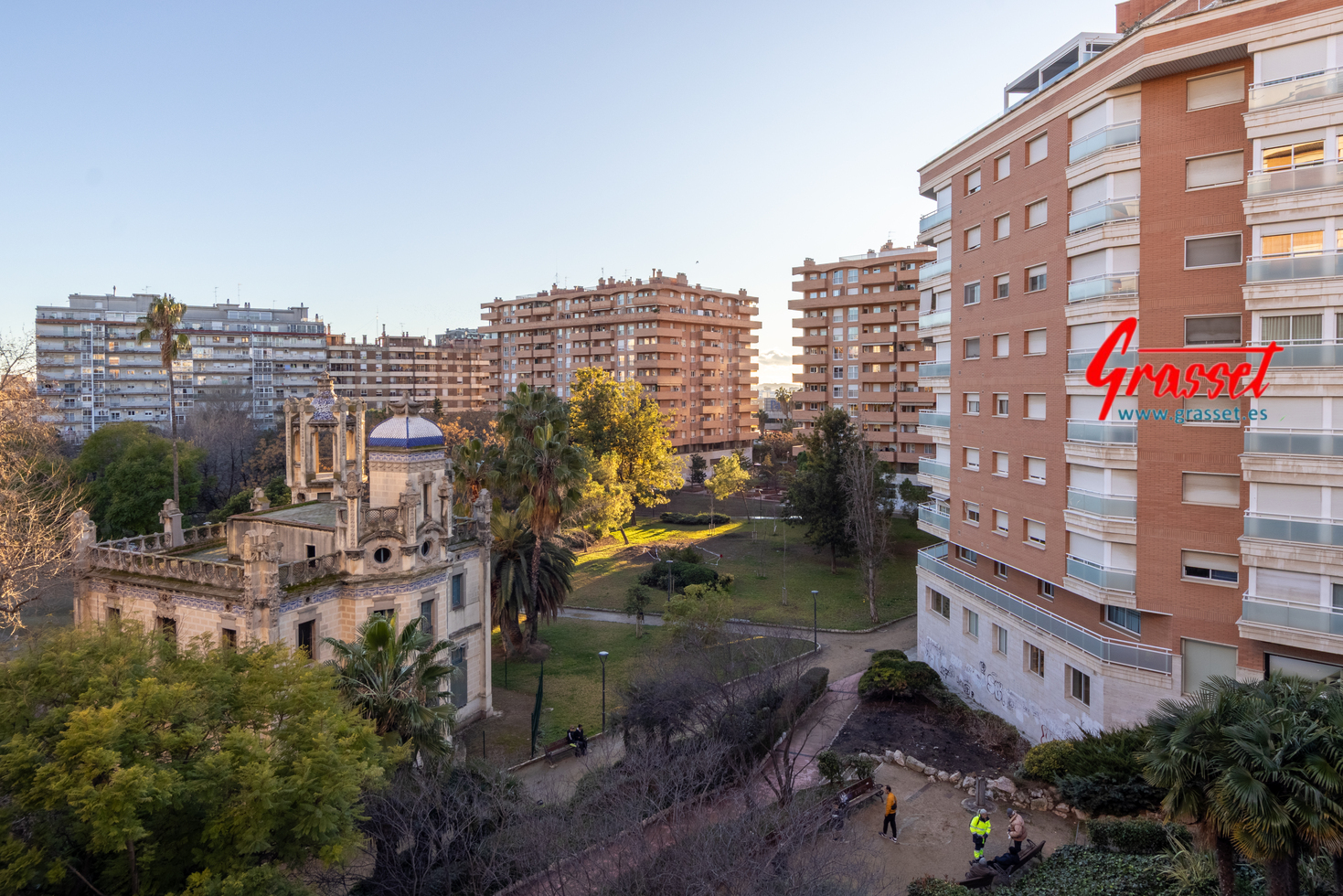 Hablamos de 114,38 m² útiles reales (135 m² construidos), muy bien distribuidos: 4 dormitorios (2 dobles y 2 individuales) con armarios empotrados, 2 baños —uno en suite—, cocina office independiente, donde desayunará toda la familia por las mañanas con vistas al parque de la Quinta de Sant Rafael.
