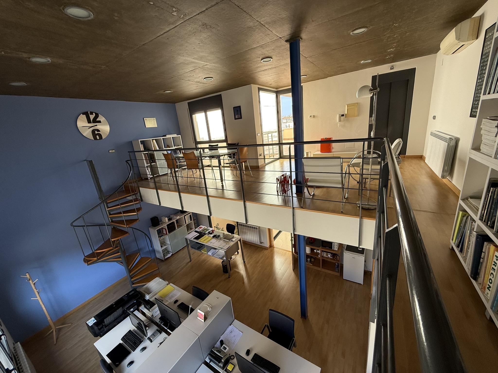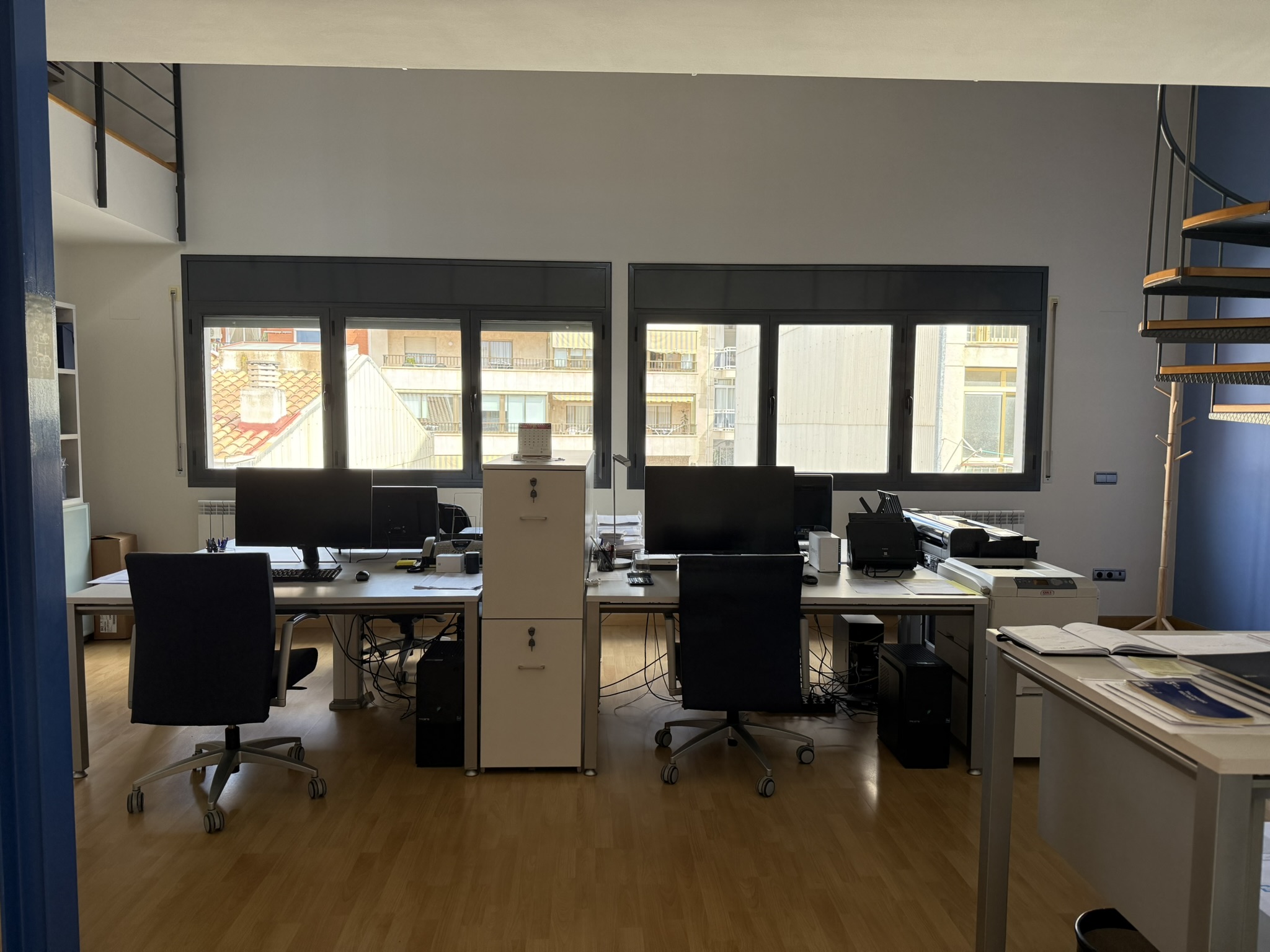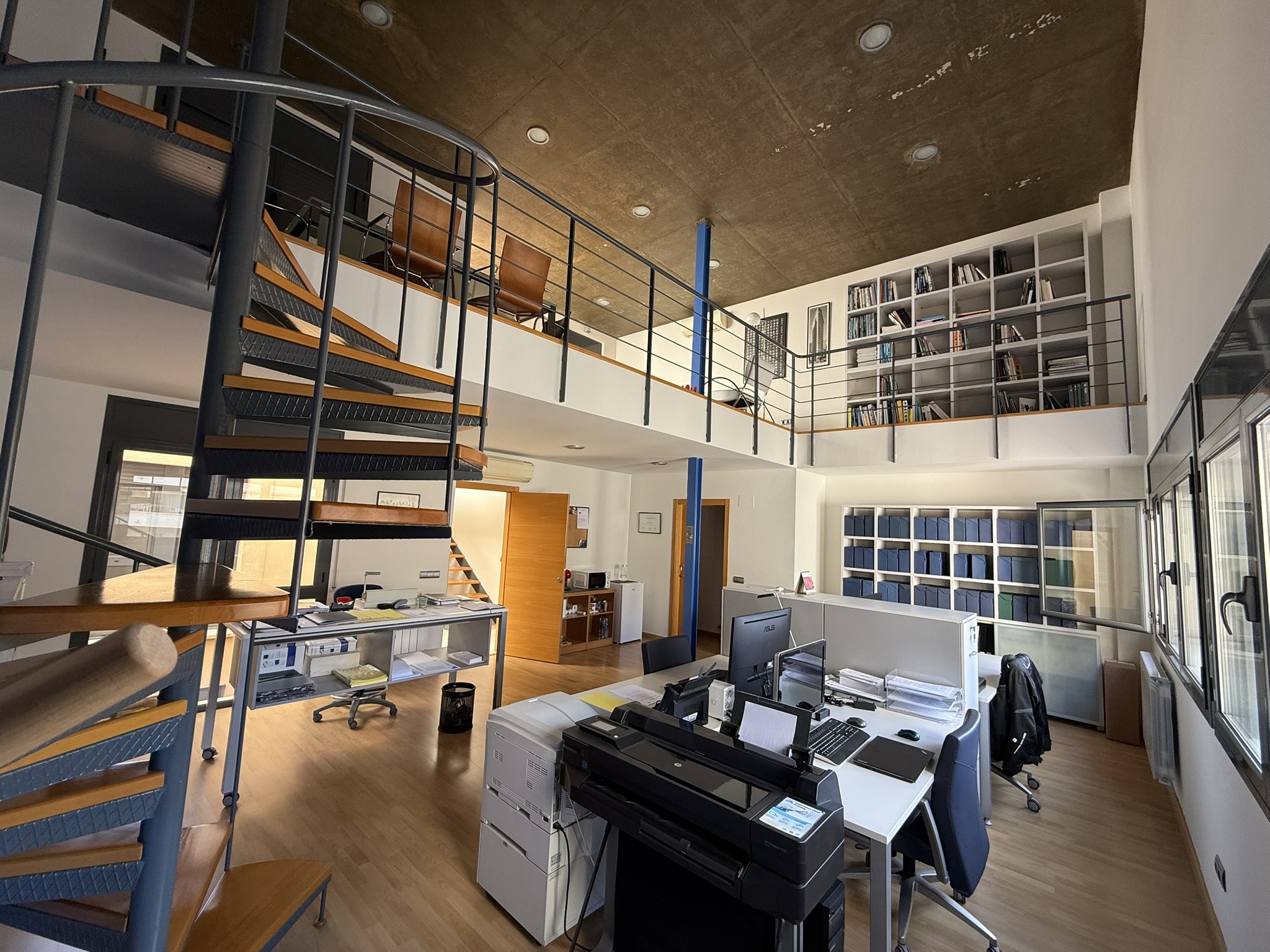Imagina't vivint en un edifici d'obra vista, fusta de faig i grans finestrals amb llum que entra per tot arreu —i sabent que tens l'edifici més eficient energèticament que pots tenir. Un espai que avui funciona com a habitatge i despatx professional, però que podria convertir-se en tres habitatges independents i local comercial. O simplement ser la llar familiar que sempre has somiat.