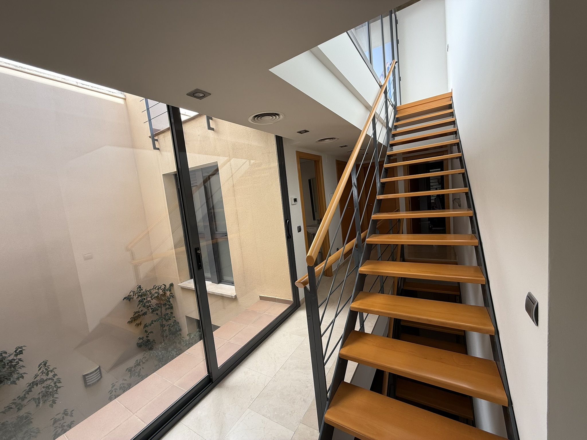 La primera planta t'ofereix un gran saló-menjador amb vidrieres tipus tribuna, cuina de qualitat, dos dormitoris i una terrassa de 24 m² amb barbacoa —l'espai perfecte per gaudir en família. A la segona planta, dos dormitoris grans, un en suite, i un espai diàfan de 72 m² que s'obre fins a la tercera planta. A dalt de tot, un altell tancat amb vidrieres i una terrassa espectacular de 46 m² amb vistes cap al sud.