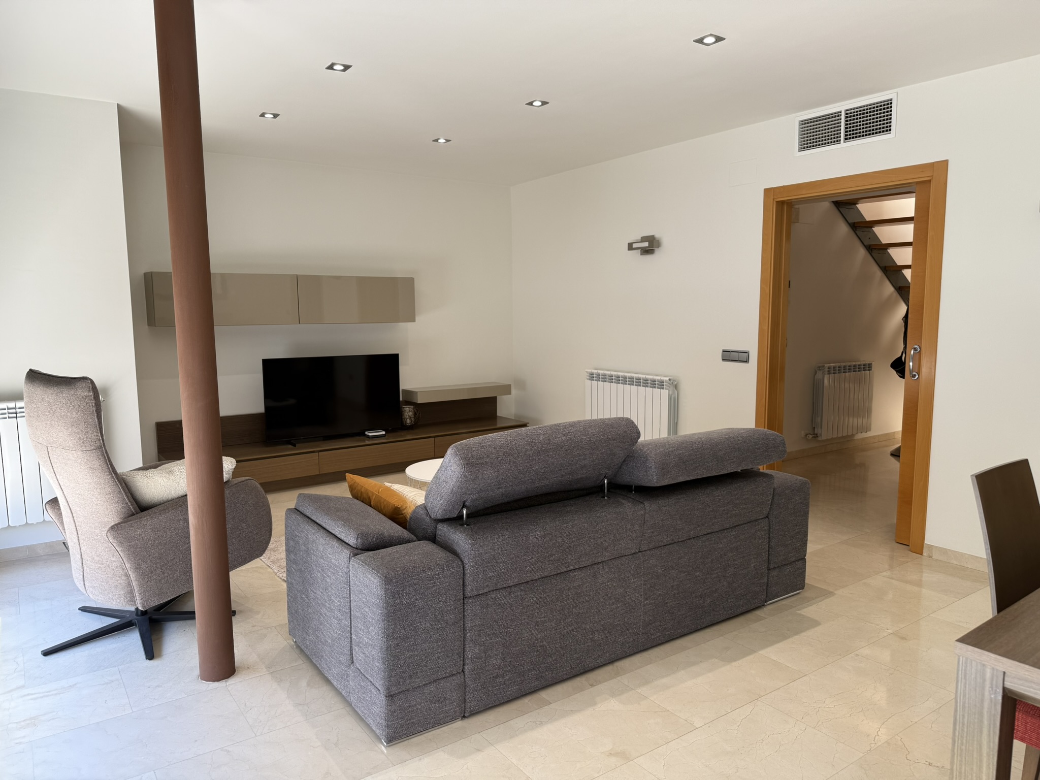 Quatre plantes amb ascensor, garatge per a diversos cotxes, terrasses orientades al sud, plaques fotovoltaiques i aerotèrmia. Tot pensat per viure amb amplitud i amb la qualificació energètica A —la més alta possible— que es tradueix en estalvi real a la factura cada mes. A pocs passos de l'Ajuntament, les estacions de bus, el futur tramvia i la platja.